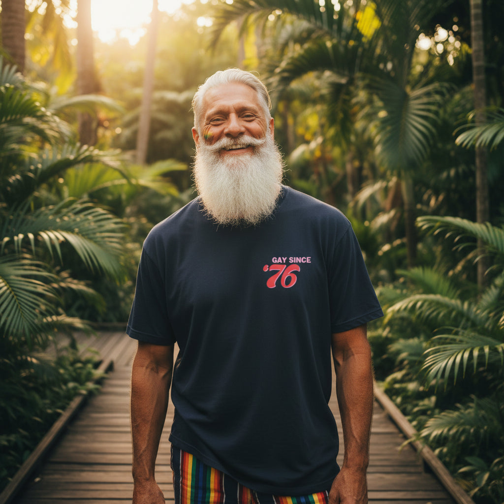 For the gays who were born in the disco haze, raised on vinyl, or spiritually identify with the 70s even if they weren’t there — the GAY Since ’7X Heavyweight Tee is your retro calling card. Pick the exact year that made you: the year you came out, the year you found your people, or the year you first felt that little spark of fabulous chaos. Swap the “X” for whatever moment shaped your story.